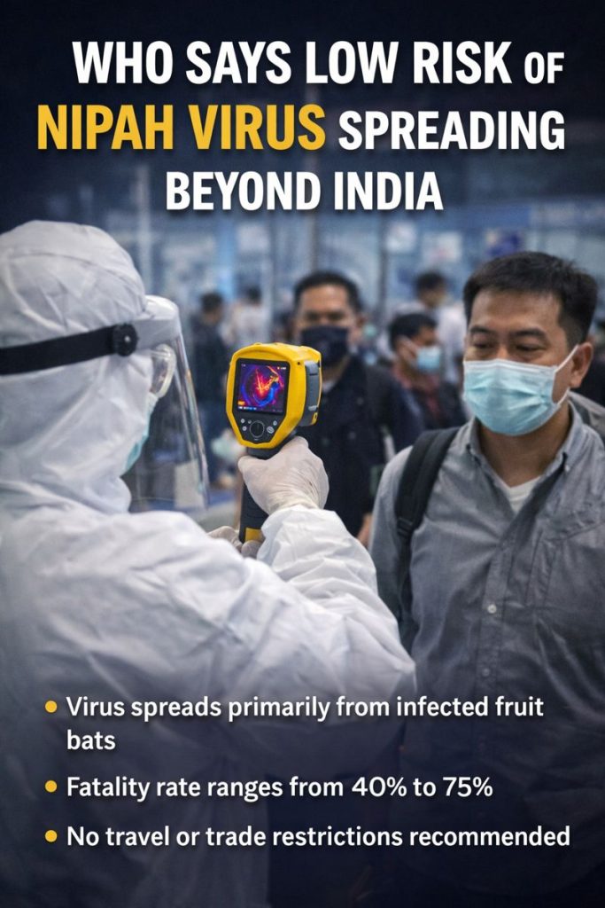 According to WHO, India has the capacity to contain such outbreaks, and there is currently no evidence of increased human-to-human transmission. However, further exposure cannot be ruled out, as the virus circulates in bat populations in parts of India and neighboring Bangladesh.